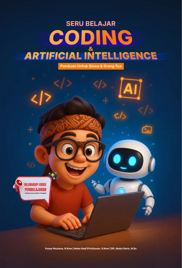 Buku “Seru Belajar Coding & Artificial Intelligence” hadir untuk kamu yang ingin mengenal dunia teknologi dengan cara seru dan gampang banget dipahami. Lewat bahasa sederhana, ilustrasi keren, dan contoh nyata, kamu akan belajar konsep dasar komputer, logika pemrograman, sampai pengenalan Artificial Intelligence.